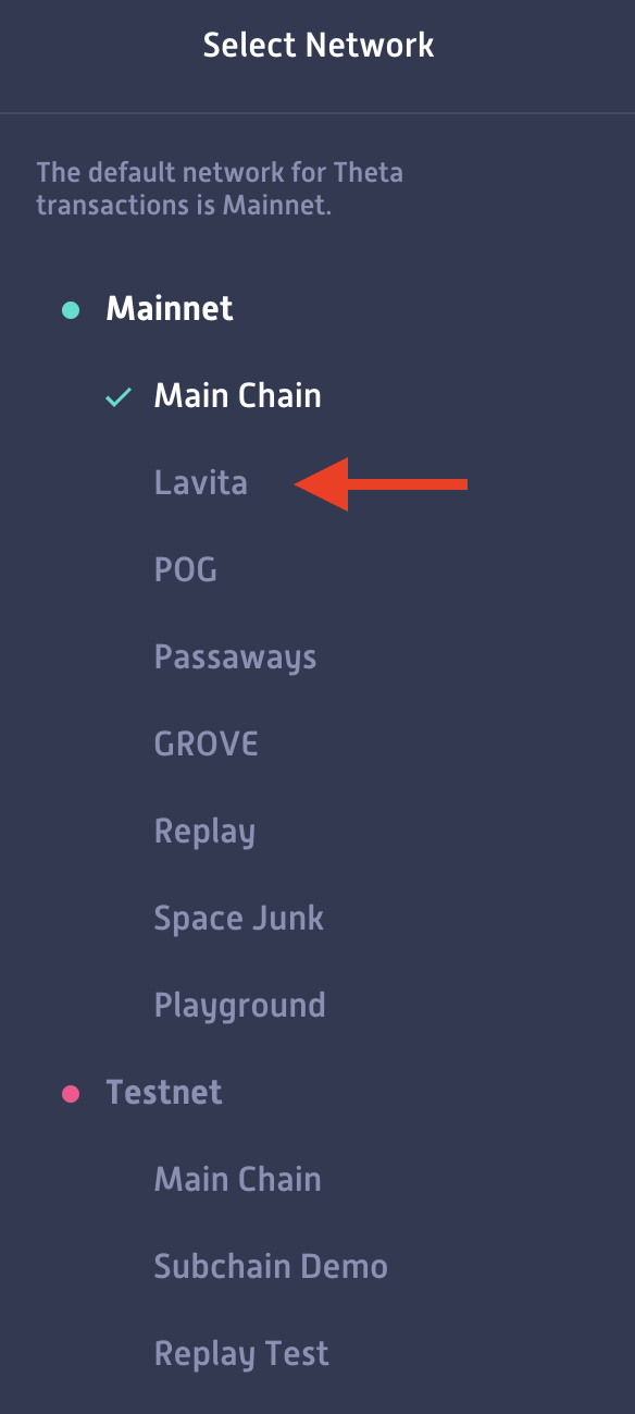 Step 1. Once you sent your vLavita to your Theta wallet, login to your wallet and click on Mainnet on top